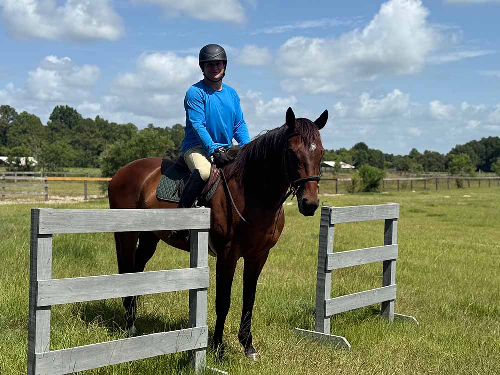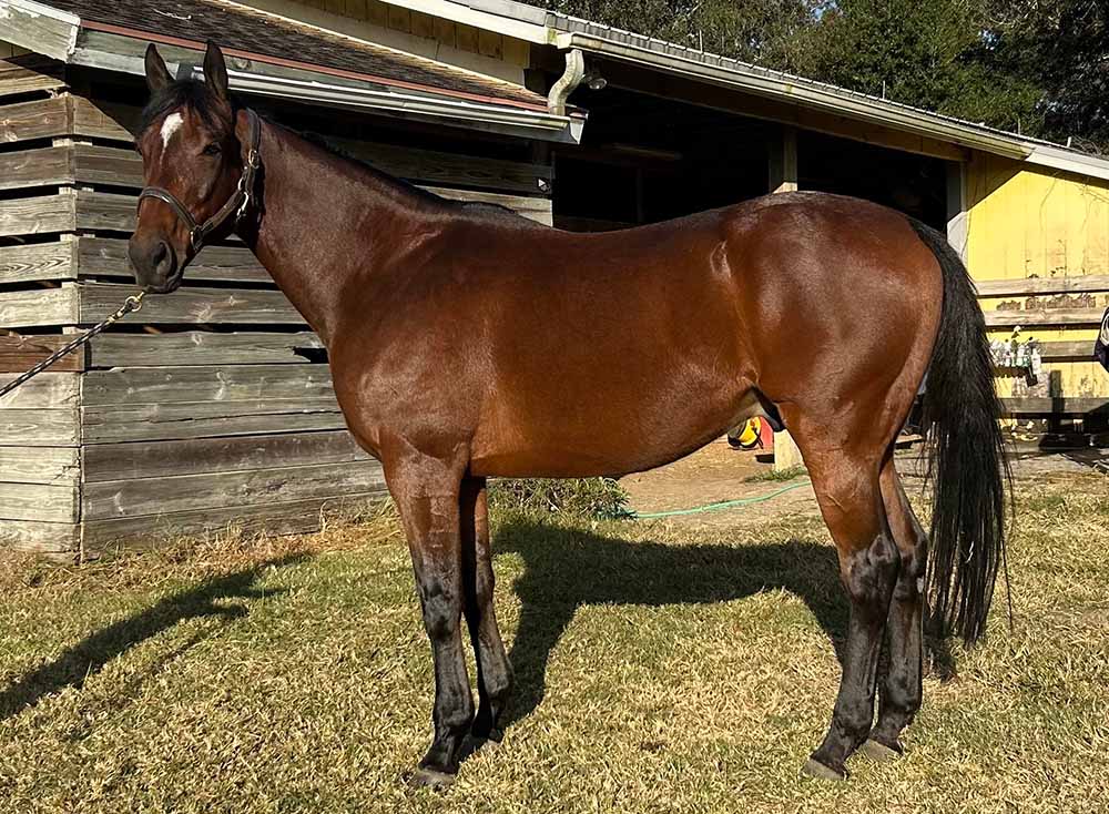 Meet Tiz a Tale, aka Timmy, our 5-year-old OTTB who stands at a majestic 15.3hh. Timmy last raced on September 8, 2024, and let’s just say he decided to take a more “chill” approach to life after sustaining a chip fracture in his left front knee. He’s completed his rehab and is now enjoying full turnout, living his best life. Although Timmy is restricted to no timed events or jumping, he’s still eligible for the RRP and FLTB Expo Restricted Division + Bell Class, ready to charm everyone with his sweet and spunky personality.